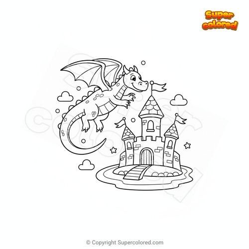 Disegno da colorare Drago che attacca un castello