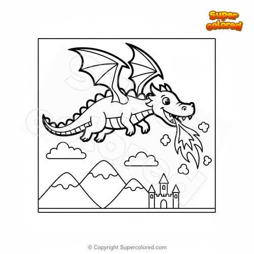 Disegno da colorare Drago che vola e sputa fuoco