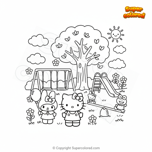 Disegno da colorare Hello Kitty al parco