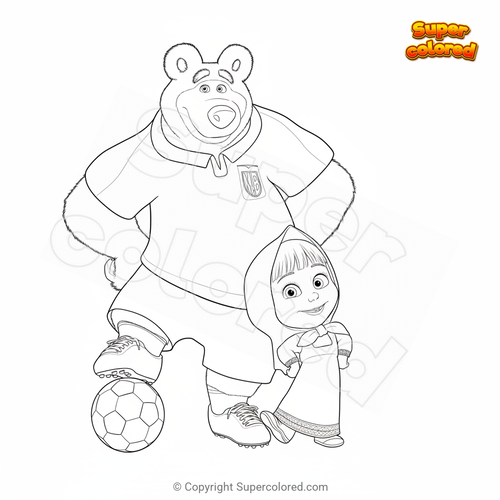 Disegno da colorare Masha e Orso giocano a calcio