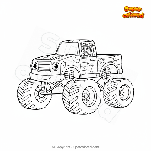 Disegno da colorare Monster car con stelle e strisce