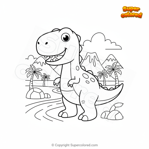 Disegno da colorare Paesaggio con dinosauro