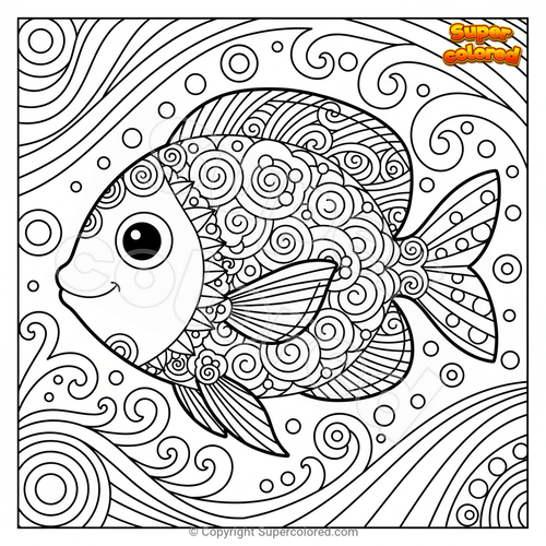 Disegno da colorare Pesce tropicale Mandala Zentangle