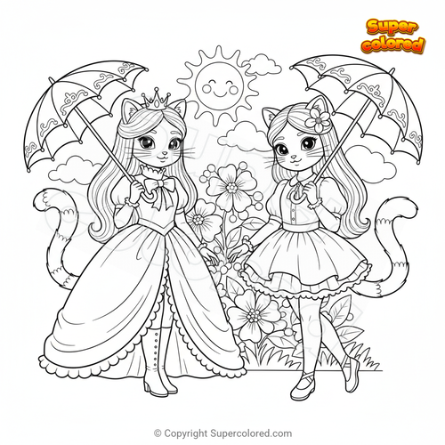 Disegno da colorare Ragazze gatto eleganti