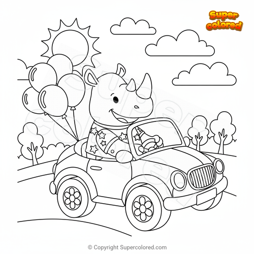 Disegno da colorare Rinoceronte in auto