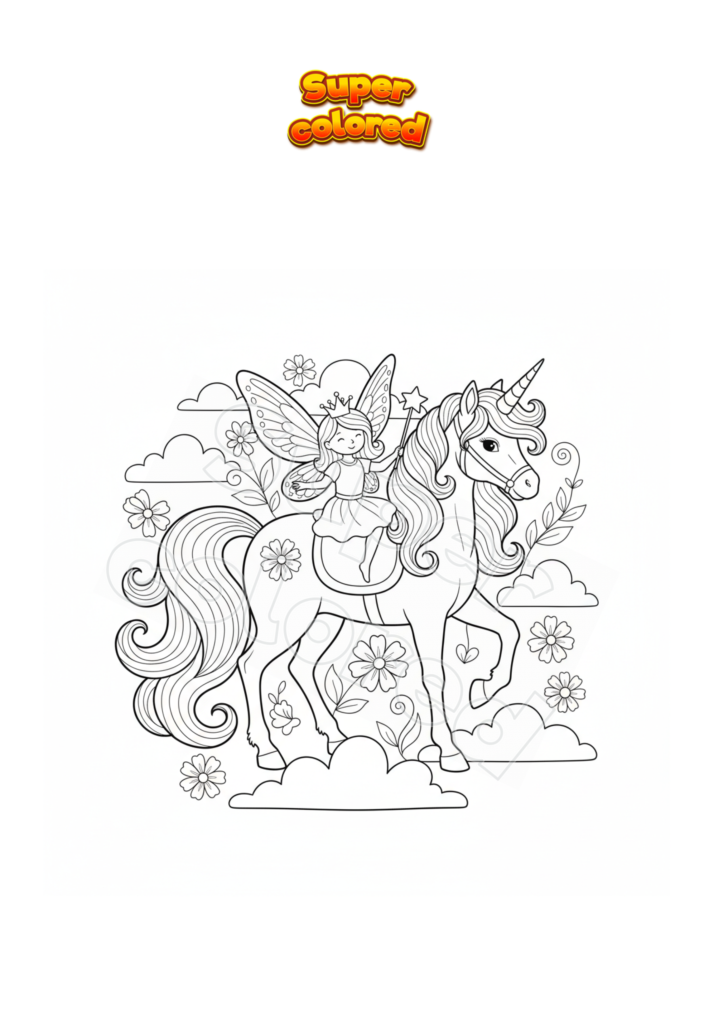 Disegno da colorare Unicorno con ali da fata